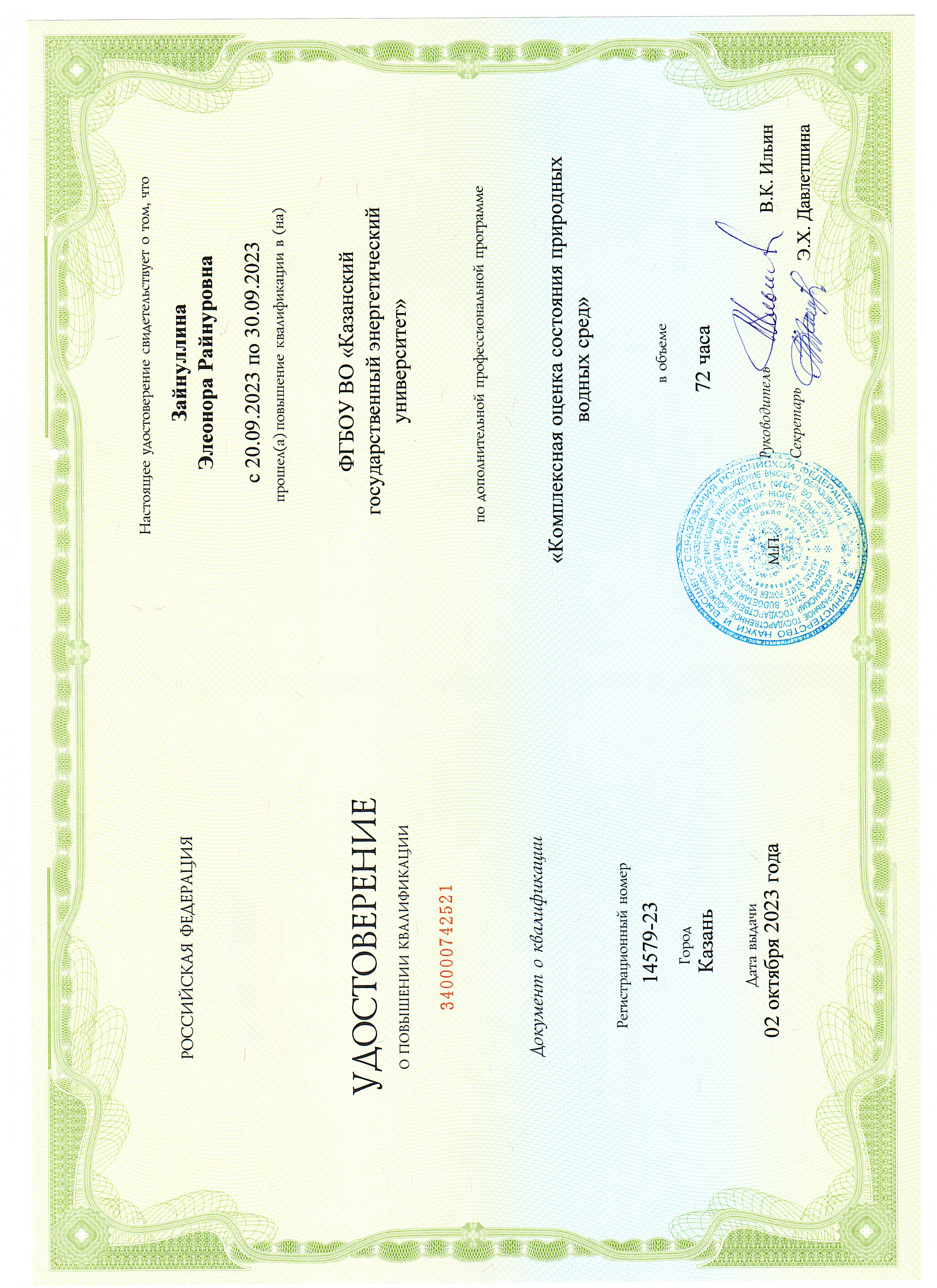 В 2002 г. прошел профессиональную переподготовку в КГЭУ по программе получения дополнительной квалификации «Преподаватель высшей школы».