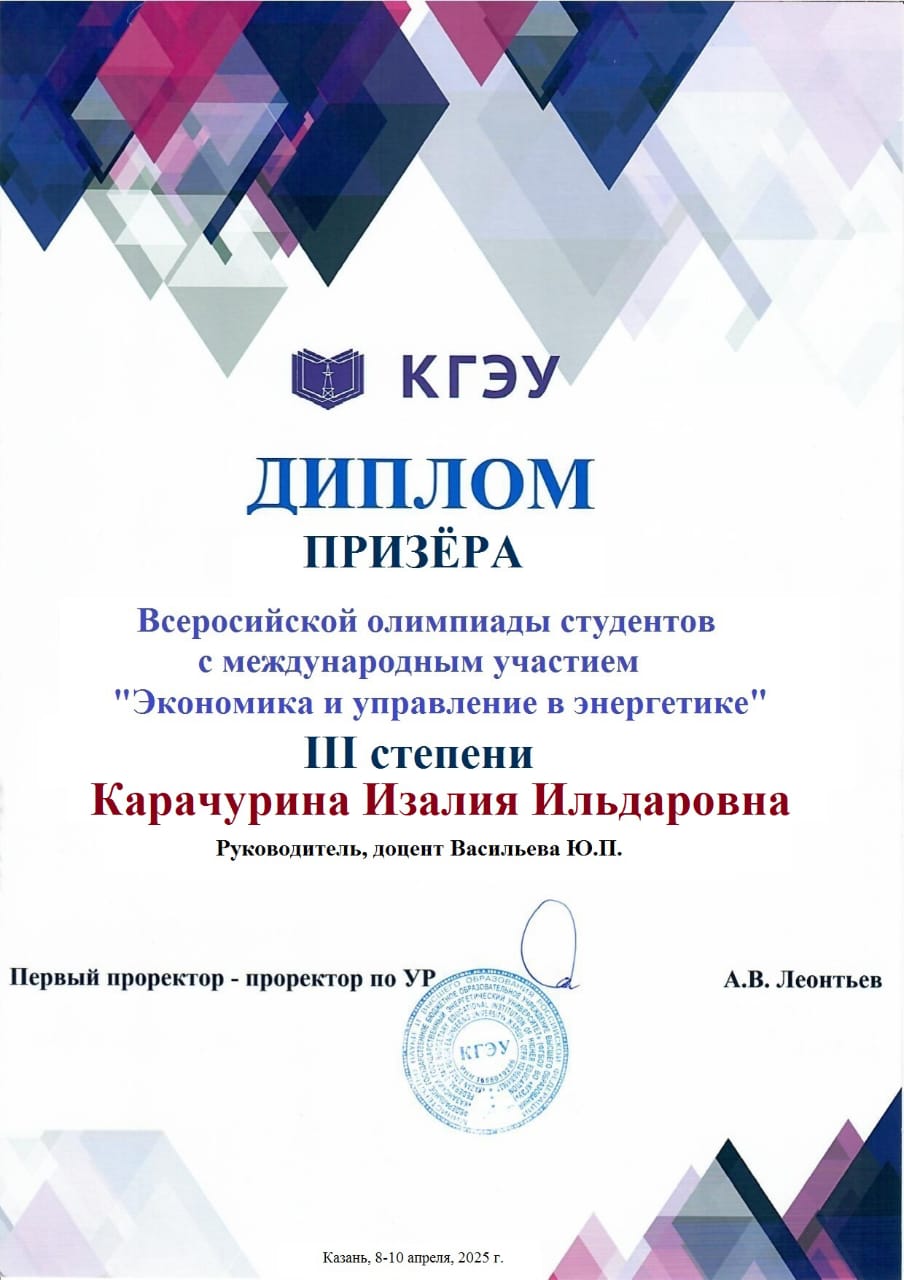 Всероссийская олимпиада с международным участием студентов образовательных организаций высшего образования «Экономика и управление в энергетике» |